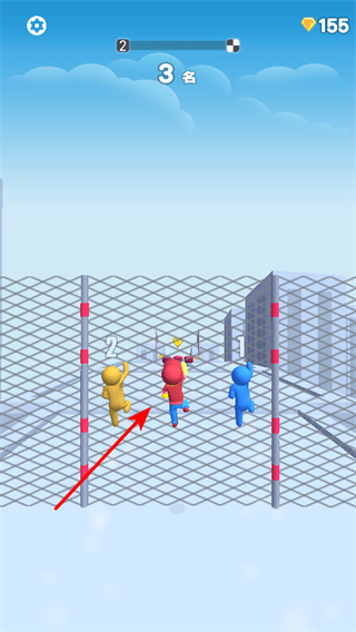 4、進(jìn)入鐵絲網(wǎng)攀爬競速環(huán)節(jié),快速點(diǎn)擊屏幕控制角色攀爬節(jié)奏,優(yōu)先搶占內(nèi)側(cè)或高進(jìn)度區(qū)域,避開其他角色干擾,獲取更多金幣獎(jiǎng)勵(lì)。