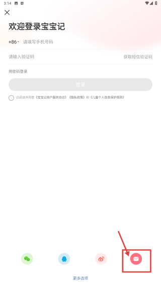3、在登錄方式選擇界面,點擊郵箱登錄圖標,進入郵箱登錄頁面。