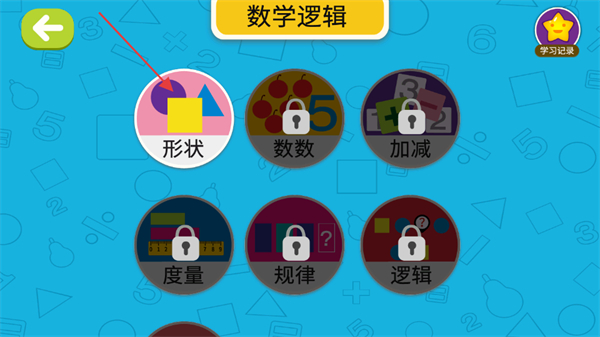 2、在數(shù)學(xué)邏輯學(xué)習(xí)頁面,點擊形狀可進入形狀學(xué)習(xí)環(huán)節(jié)。