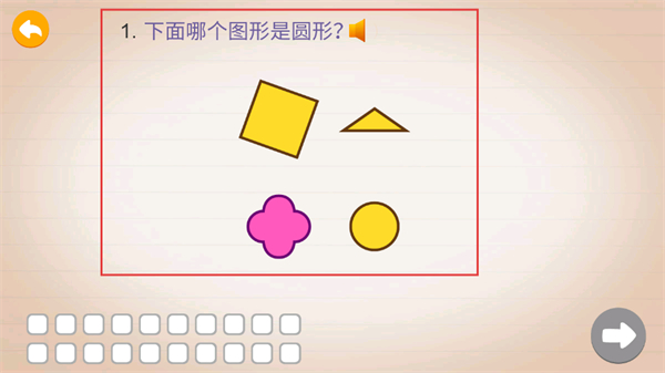 3、在形狀學(xué)習(xí)環(huán)節(jié),可根據(jù)題目如下面哪個圖形是圓形進行圖形識別學(xué)習(xí)。