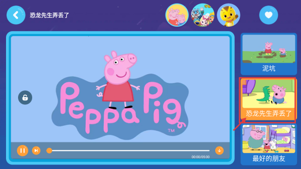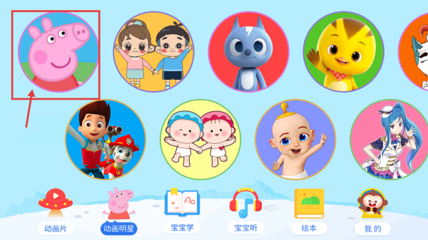 2、在動(dòng)畫(huà)明星選擇頁(yè)面,點(diǎn)擊小豬佩奇圖標(biāo),進(jìn)入其動(dòng)畫(huà)列表頁(yè)面。