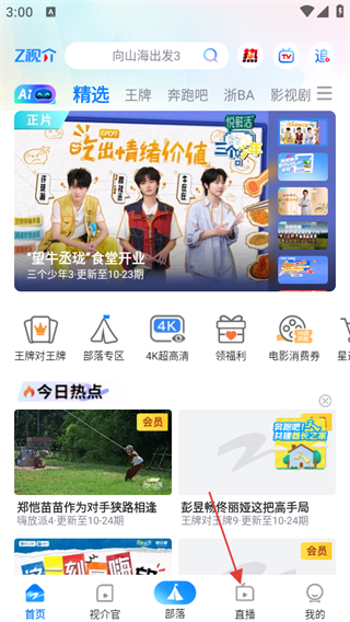 1、打開(kāi)Z視介,點(diǎn)擊頁(yè)面底部直播,可進(jìn)入直播頻道頁(yè)面。