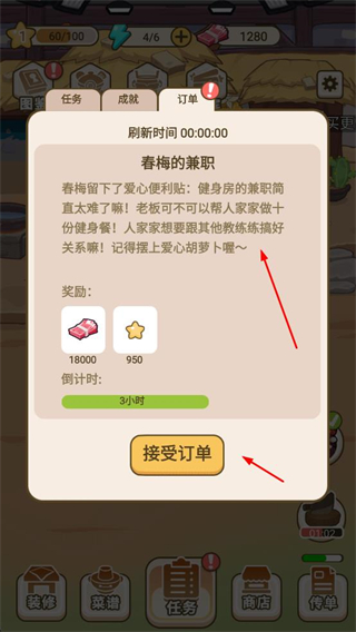 3、接受訂單如春梅的兼職訂單,完成訂單任務(wù),獲取高額獎(jiǎng)勵(lì),積累財(cái)富。