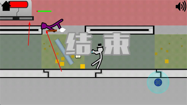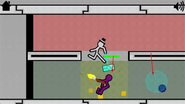 3、戰(zhàn)斗過程中,操控火柴人移動(dòng)并利用武器攻擊對(duì)手,留意場(chǎng)景中的道具,合理利用以占據(jù)優(yōu)勢(shì)。