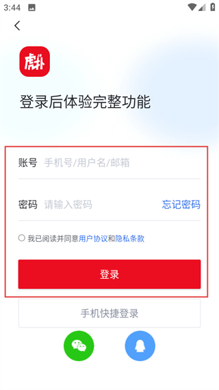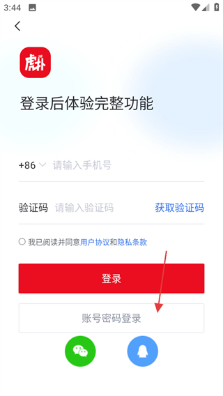 4、在賬號密碼登錄頁面,輸入信息,同意協(xié)議后點擊登錄可完成賬號登錄。