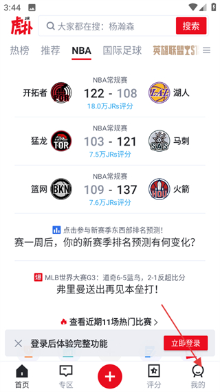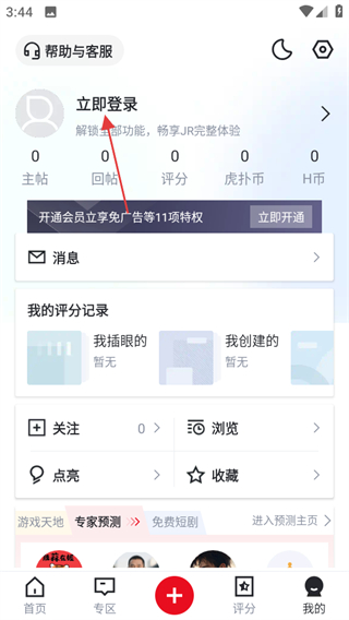 1、打開虎撲社區(qū),點擊頁面右下角我的,可進入個人中心頁面。