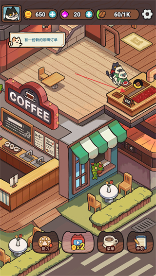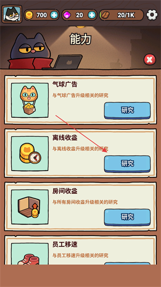 3、點擊右下角的能力按鈕,可以提升貓咪的自身能力提高營業(yè)效率。