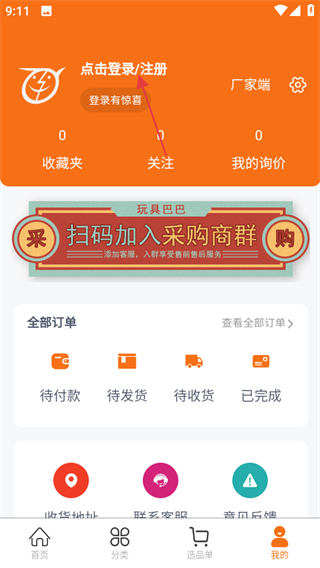 1、打開玩具巴巴,點(diǎn)擊頁面右下角我的,可進(jìn)入個(gè)人中心頁面。