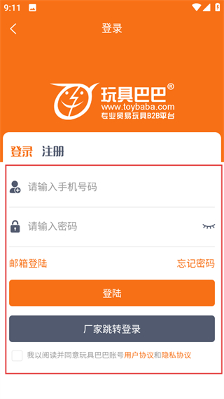 3、在登錄頁面,輸入信息,同意協(xié)議后點(diǎn)擊登陸可完成賬號(hào)登錄。