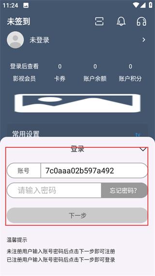 3、在登錄頁面,輸入賬號和密碼后點擊下一步可完成賬號登錄。