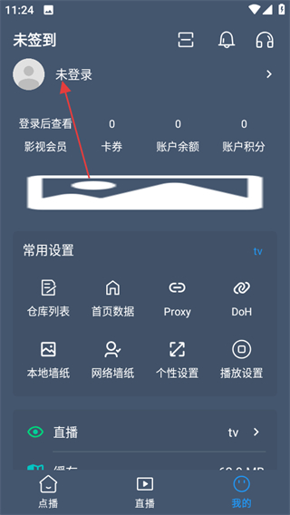 2、在個人中心頁面,點擊未登錄可進入登錄賬號操作頁面。