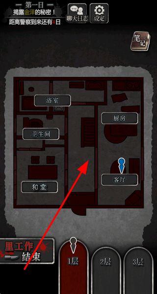 1、查看地圖,清晰了解房屋的浴室、廚房、和室等區(qū)域布局,規(guī)劃在各樓層的行動(dòng)路線,為在警察到來前揭露金澤的秘密做足準(zhǔn)備。