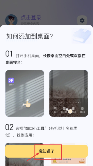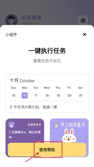 3、在小組件頁面,點(diǎn)擊使用幫助選項(xiàng),查看如何添加到桌面的說明。