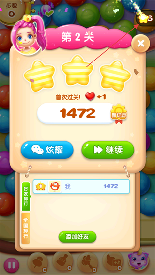 2、在規(guī)定步數(shù)內(nèi),通過連接相鄰的小球進(jìn)行消除從而獲得糖果。