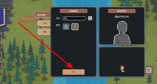 1、創(chuàng)建角色時(shí),設(shè)置名字、選擇性別,完成這些基礎(chǔ)信息設(shè)置后,就能正式開啟在像素世界里的騎馬與砍殺冒險(xiǎn)之旅。