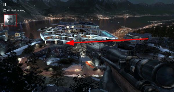 1、左右滑動屏幕旋轉視角,全方位觀察別墅及周邊場景,仔細尋找任務目標所在的位置,為后續(xù)狙擊行動做好準備。