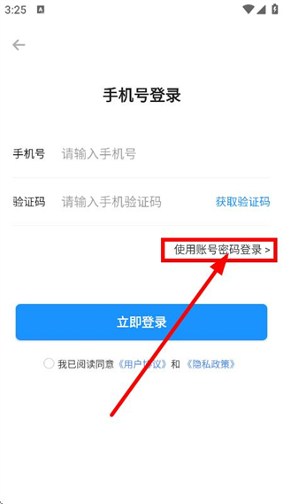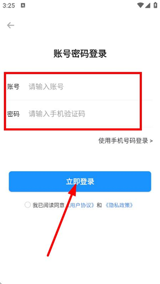 4、在賬號密碼登錄界面,輸入賬號、密碼,點(diǎn)擊立即登錄,完成賬號登錄操作。