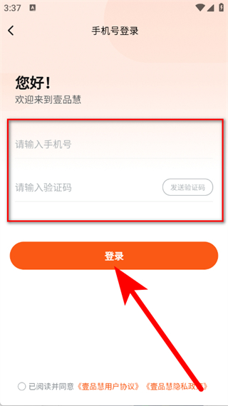 4、輸入手機號碼,點擊發(fā)送驗證碼,輸入驗證碼后,勾選后,點擊登錄,完成賬號登錄。
