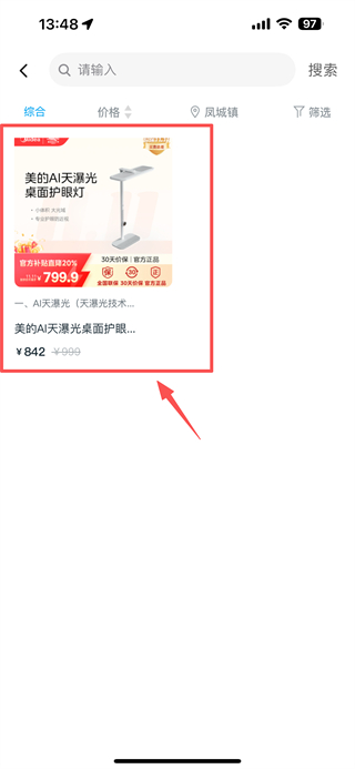 4、在智能照明商品列表頁面,即可查看如美的天瀑光桌面護(hù)眼燈等商品,點(diǎn)擊商品條目可進(jìn)入詳情頁進(jìn)行選購。