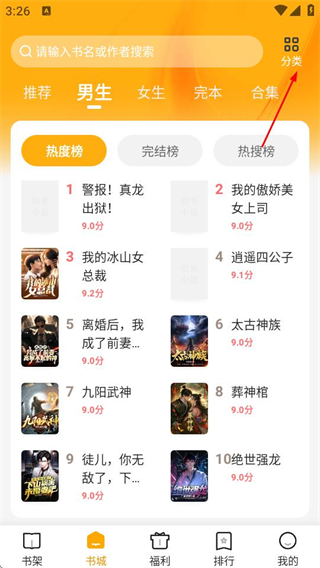 1、打開拾光小說,在首頁點(diǎn)擊分類,進(jìn)入分類頁面。