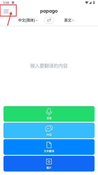 1、打開翻譯類APP首頁,點擊左上角菜單圖標,展開功能菜單。