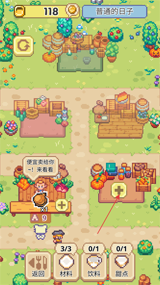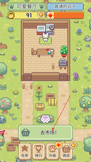 1、進入游戲開啟新的一天經(jīng)營,點擊去市場按鈕進入市場進行購物食材。