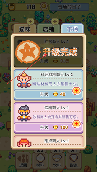 4、點擊選擇想要的食材商人進行升級,讓他在市場上開設店鋪。
