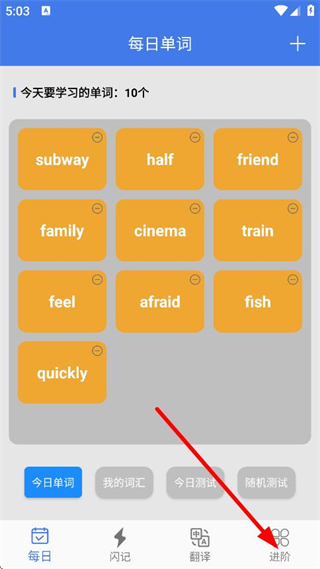2、隨后我們在APP首頁,點擊底部進階,進入進階學習頁面。