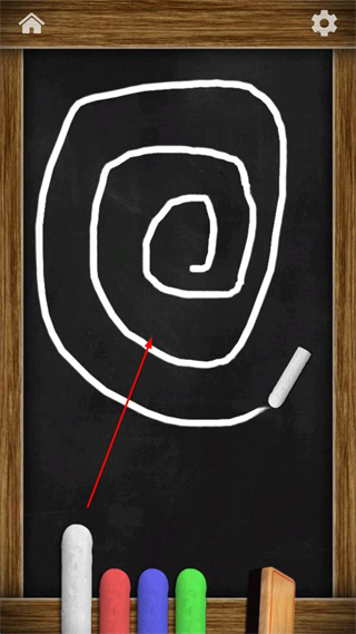 4、在粉筆繪畫界面,按照箭頭指示的螺旋線條,用粉筆繪制圖案。