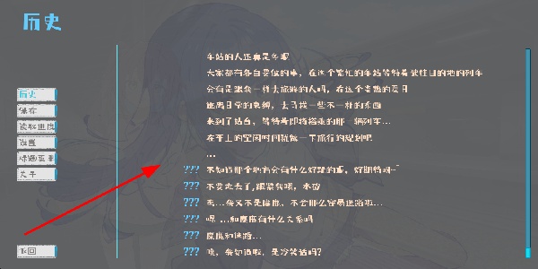4、回歸歷史查看之前的對(duì)話劇情,回顧游戲的故事內(nèi)容,梳理劇情線索,更好地理解游戲的敘事。