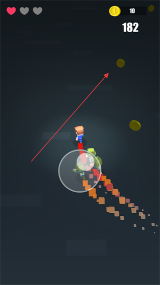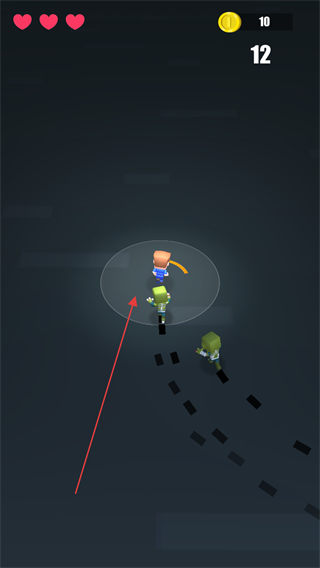 1、操控角色在場(chǎng)景中移動(dòng),躲避綠色僵尸的追擊,利用走位拉開(kāi)距離。