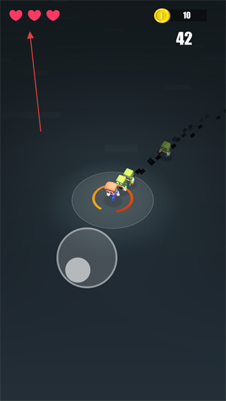 2、注意左上角的愛(ài)心生命值,被僵尸碰到會(huì)減少愛(ài)心,需盡量避免碰撞。