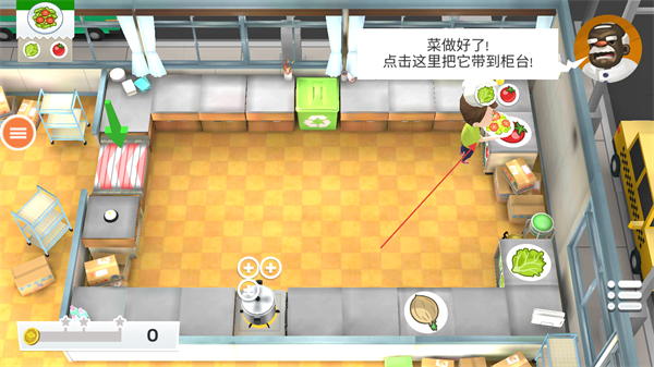 1、根據(jù)提示點擊食材如生菜,制作沙拉等菜品。