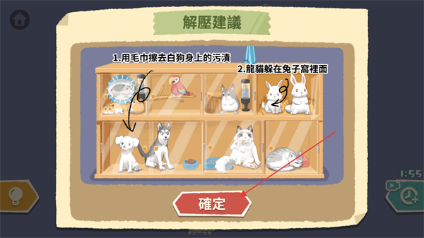 4、將倉鼠等小動物放置到對應的收納格中,整理好所有寵物,完成收納任務。