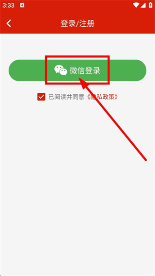 3、在登錄/注冊(cè)頁(yè)面,點(diǎn)擊微信登錄,完成登錄操作。