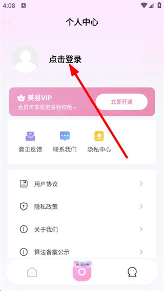3、在個人中心頁面,點擊點擊登錄,進(jìn)入登錄頁面。