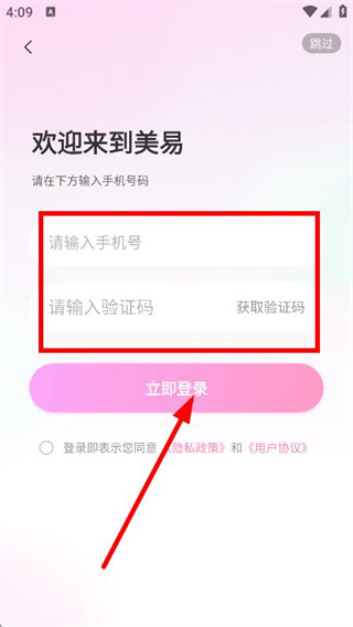 4、在輸入手機號和驗證碼后點擊立即登錄,完成登錄操作。