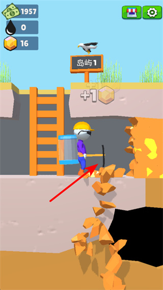 3、在島嶼采礦區(qū)域,操控角色使用鎬子挖掘礦石,通過持續(xù)挖掘可獲取金幣、礦石等資源,注意礦石分布以高效收集。