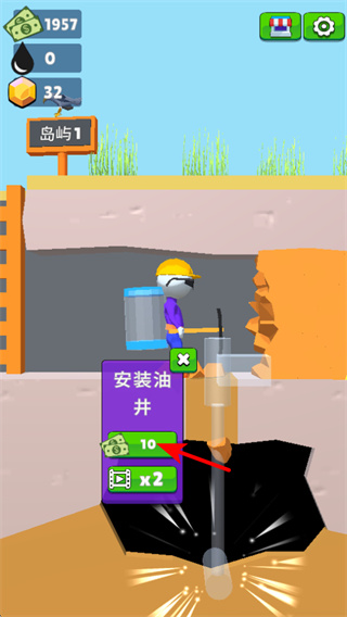 4、在出現(xiàn)油井的區(qū)域,點擊花費10金幣的按鈕,可安裝油井,安裝后能持續(xù)產(chǎn)出石油資源,免費坐船等操作積累資源。