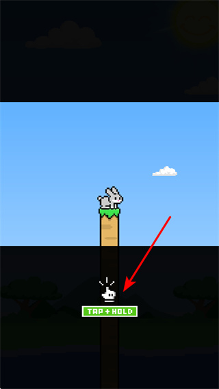 2、在游戲操作提示界面,按照TAP+HOLD提示,點擊并按住屏幕,可控制兔子蓄力跳躍,這是掌握兔子跳躍操作的關(guān)鍵步驟。