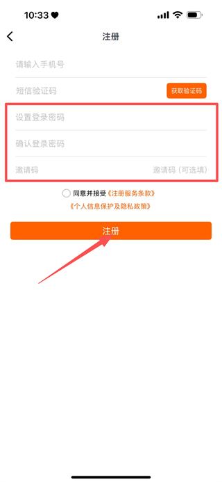 3、設置登錄密碼,確認登錄密碼,點擊注冊,完成注冊操作。