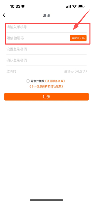 2、隨后我們在注冊頁面,輸入手機號后點擊獲取驗證碼。