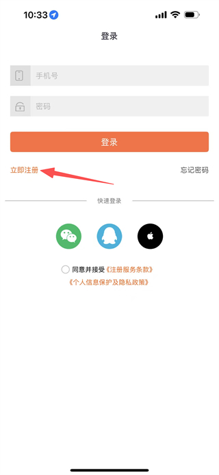 1、在登錄頁面,點擊立即注冊,進入注冊頁面。
