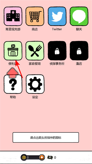 2、在功能選擇界面,點擊便利圖標,可進入便利店場景,開啟經(jīng)營,解鎖游戲功能的關(guān)鍵步驟,點擊才能進入對應(yīng)場景。