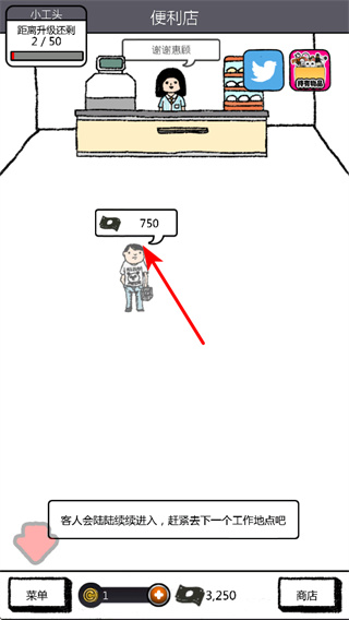 3、在便利店場景中,點擊客人,可完成服務(wù)并獲取金幣獎勵,這是積累游戲資源的關(guān)鍵操作,準確點擊才能獲得收益。