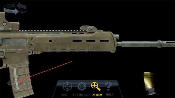2、點(diǎn)擊下方的放大鏡,可以拉進(jìn)觀察距離,在這個(gè)模式下長按右下角的方向鍵可以控制視角更好的觀察槍械結(jié)構(gòu)。