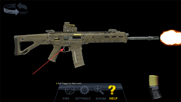 3、點(diǎn)擊或長按槍支的扳機(jī),可以感受槍械開火時(shí)的震感與音效的體驗(yàn)。