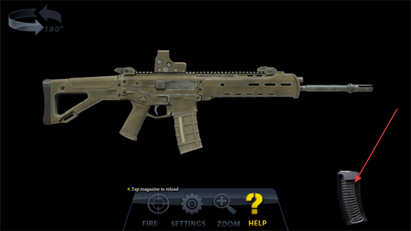 4、點(diǎn)擊右下角的彈夾可以進(jìn)行換彈操作,觀察換彈時(shí)的注意事項(xiàng)。