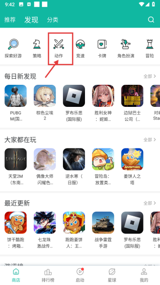 2、在商店頁面,點(diǎn)擊動作分類標(biāo)簽,進(jìn)入動作分類游戲列表頁面。