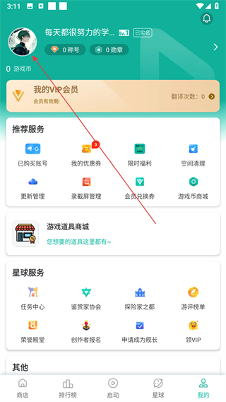 1、打開OurPlay軟件,進(jìn)入個人中心頁面后點(diǎn)擊頭像區(qū)域。